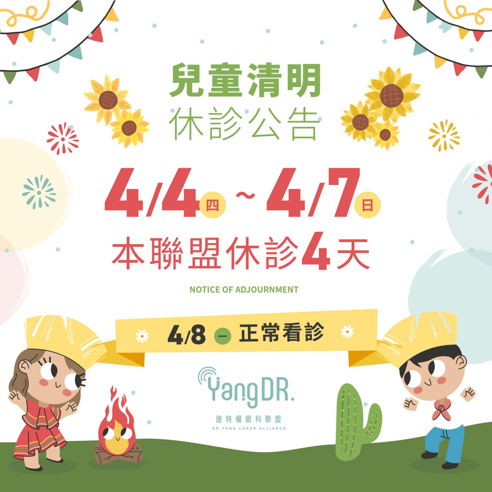 親愛的朋友們,感謝您們一直對我們診所的支持與信任。為了讓醫護人員也能享有家庭團聚的時光,我們將於兒童清明節休診四天。