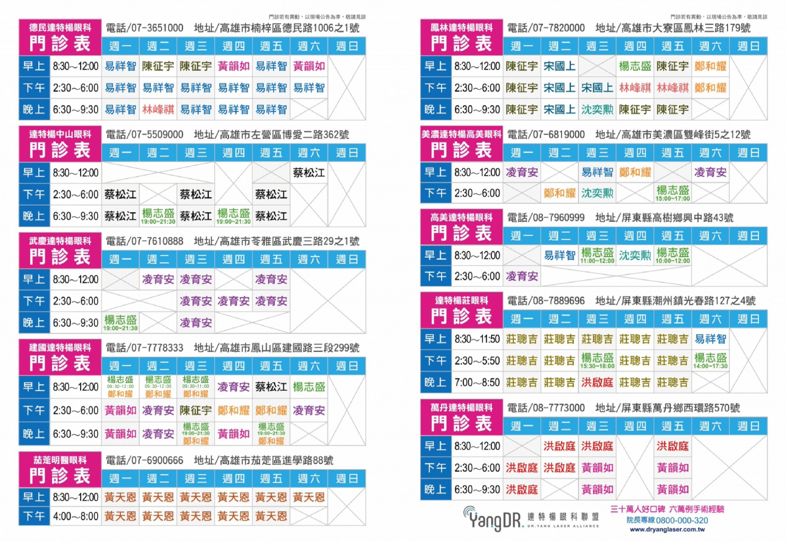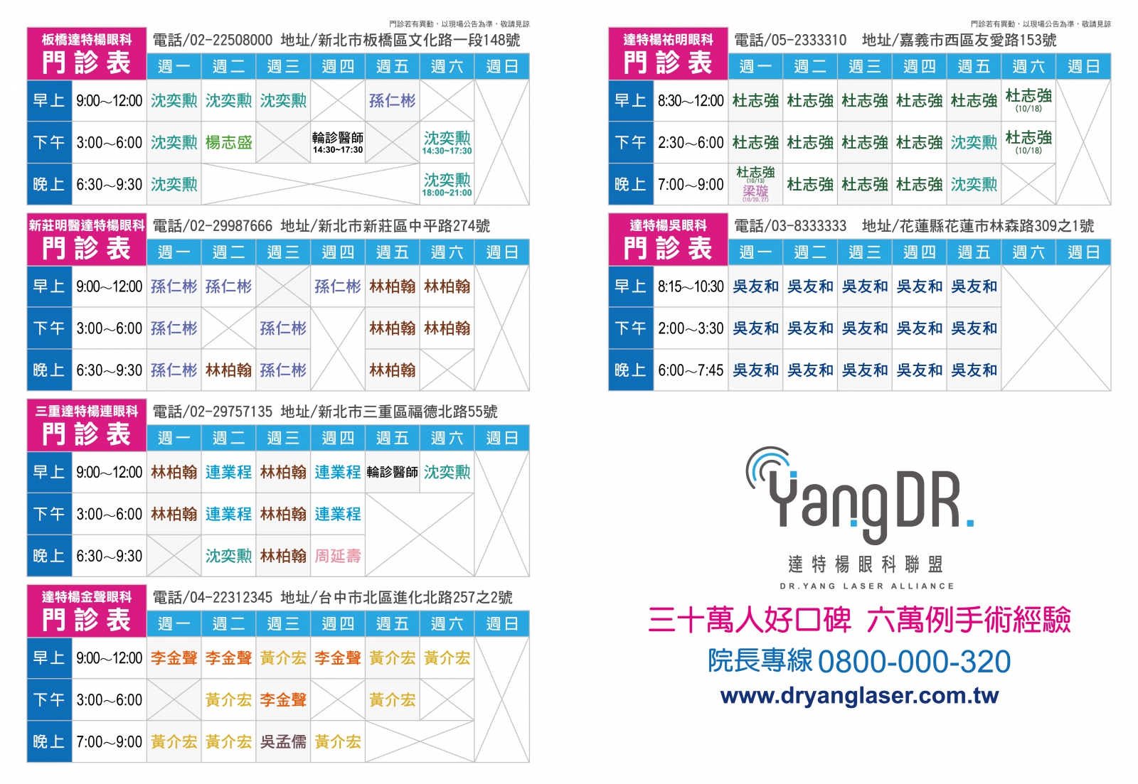 ※ 門診情形若有異動,以現場公告為主,敬請見諒 ※
