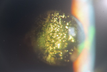 此外,於晚上或關燈後,在燈下或以手電筒見到瞳孔的中央有上百成千星狀或雪花狀混濁點漂浮物,如聖誕節的飾物般閃爍,這就是星狀玻璃體的病變,此種混濁小點包含有鈣鹽或脂質的沉積物,漂浮於玻璃體中,患者本身無自覺症狀,也不影響視力,年齡越大者越常見,無特殊治療方法。一旦發現有星狀玻璃體,40%合併糖尿病,33%為高膽固醇,而44%的患者其三酸甘油脂值大於190 mg/dl,另外酗酒容易產生。